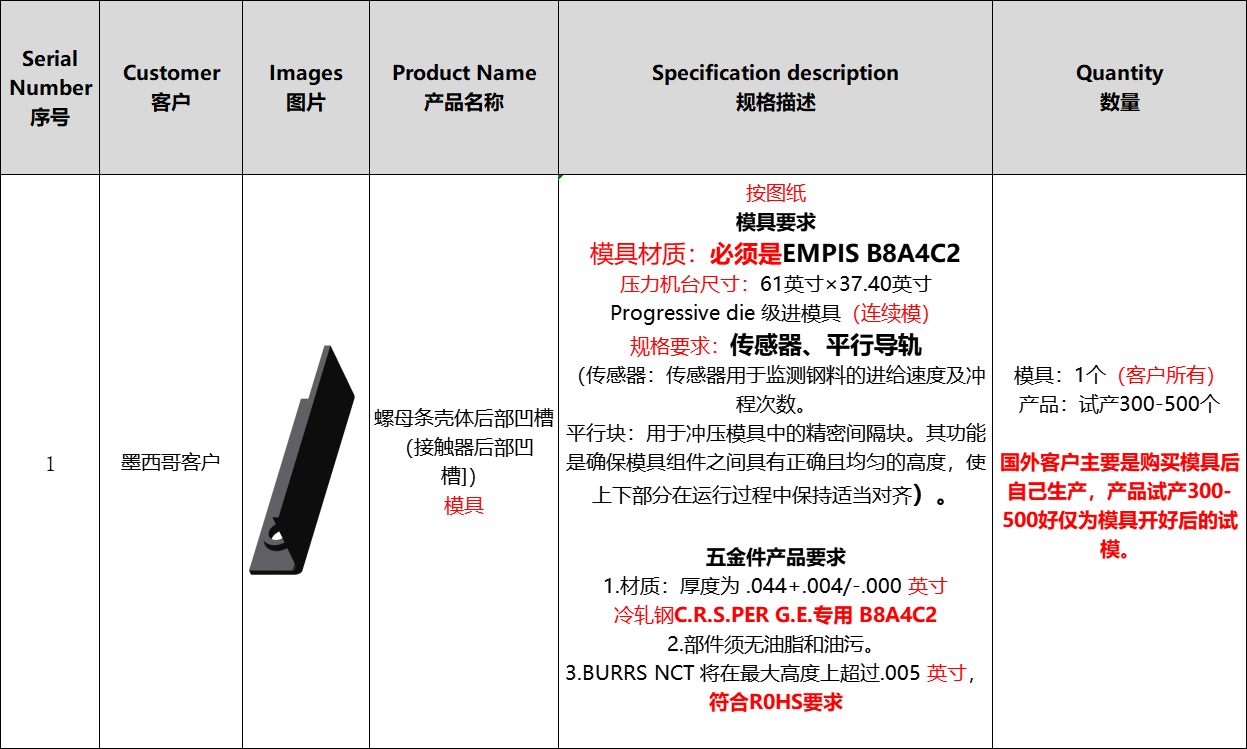 求购:五金冲压模具 出口墨西哥