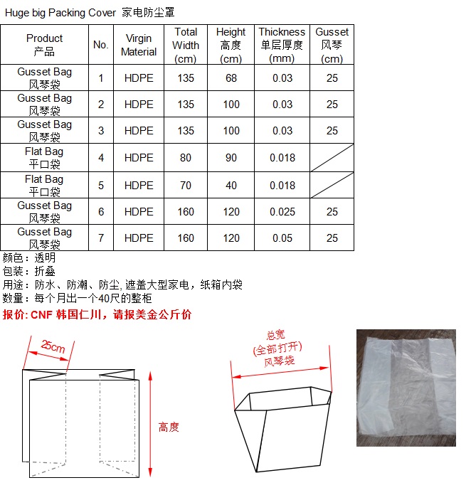 HDPE塑料袋防尘罩 大型家电用