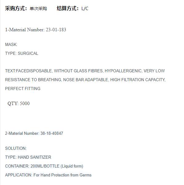 采购外科口罩和洗手液
