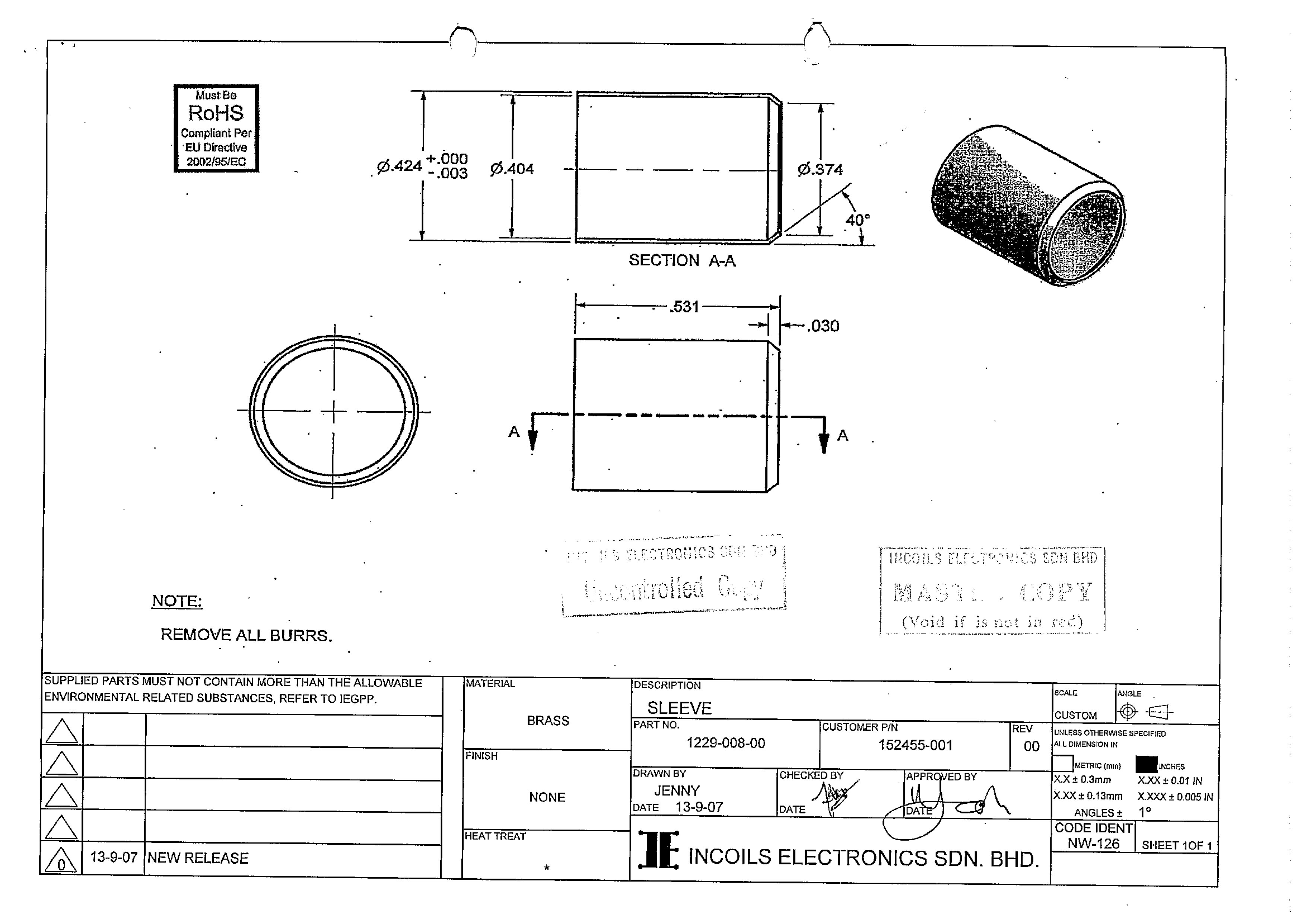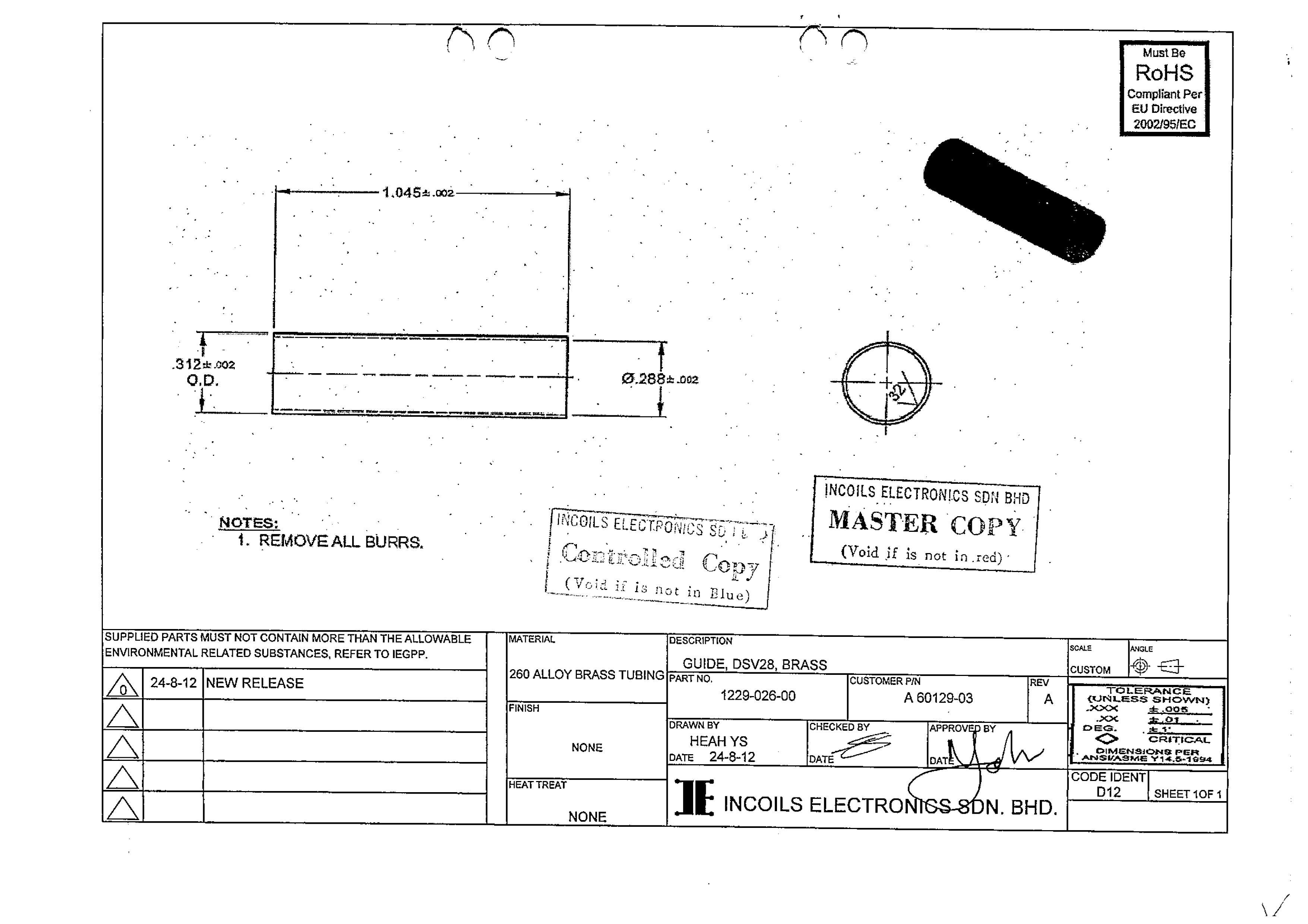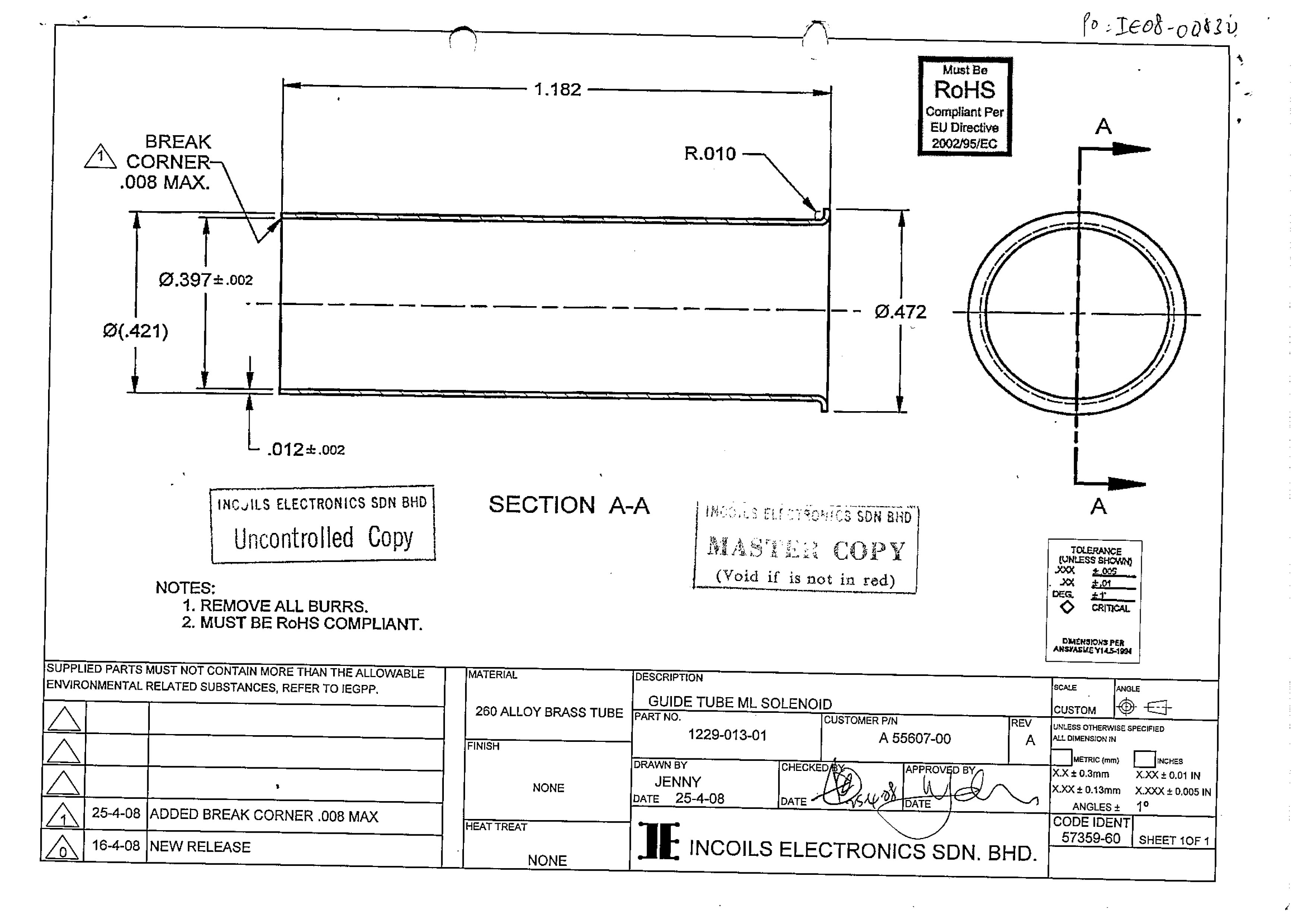 | 补充说明 | 黄铜牌号H65,尺寸单位为英寸,如长度1.182英寸,Φ.472表示直径0.472英寸 |