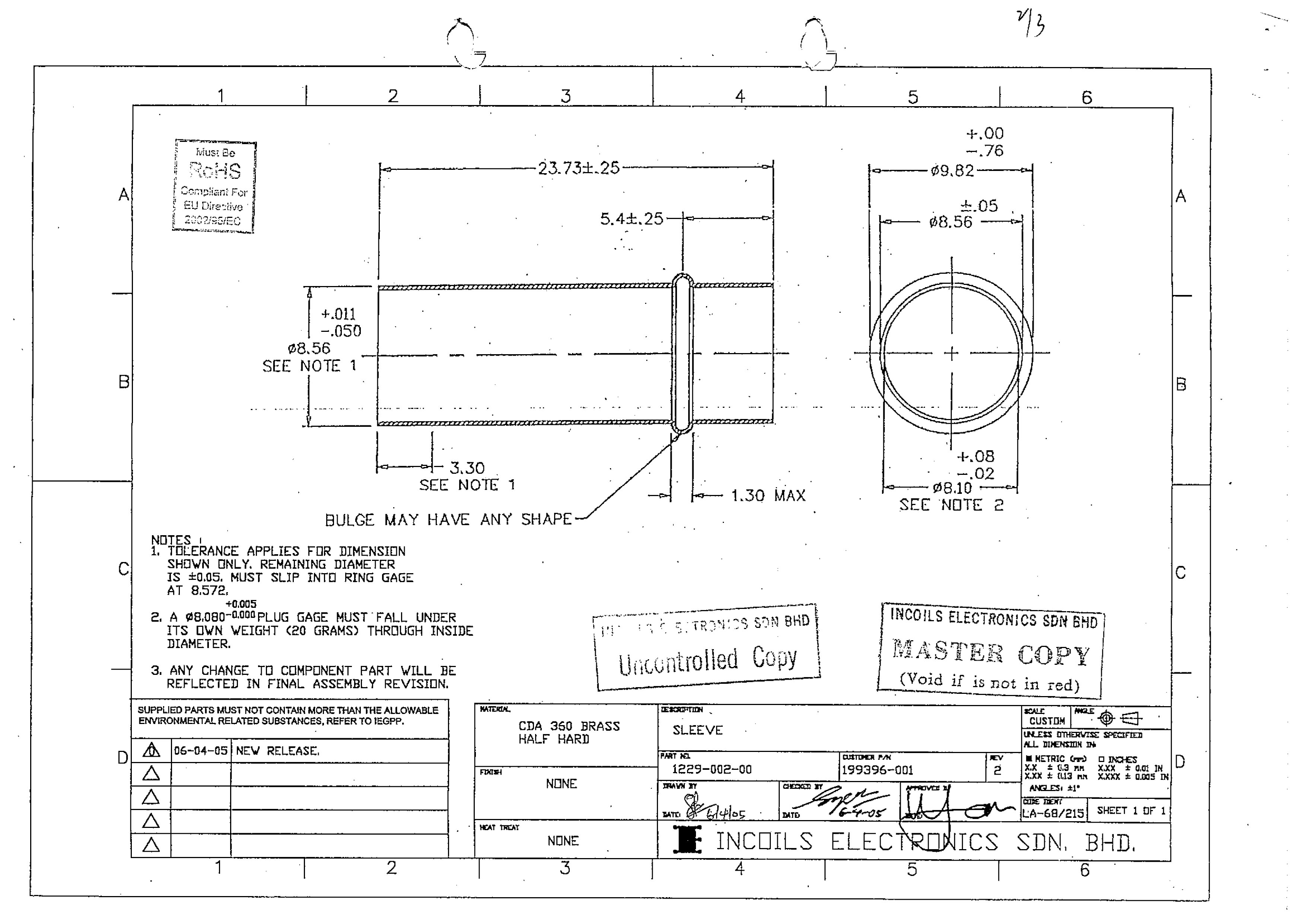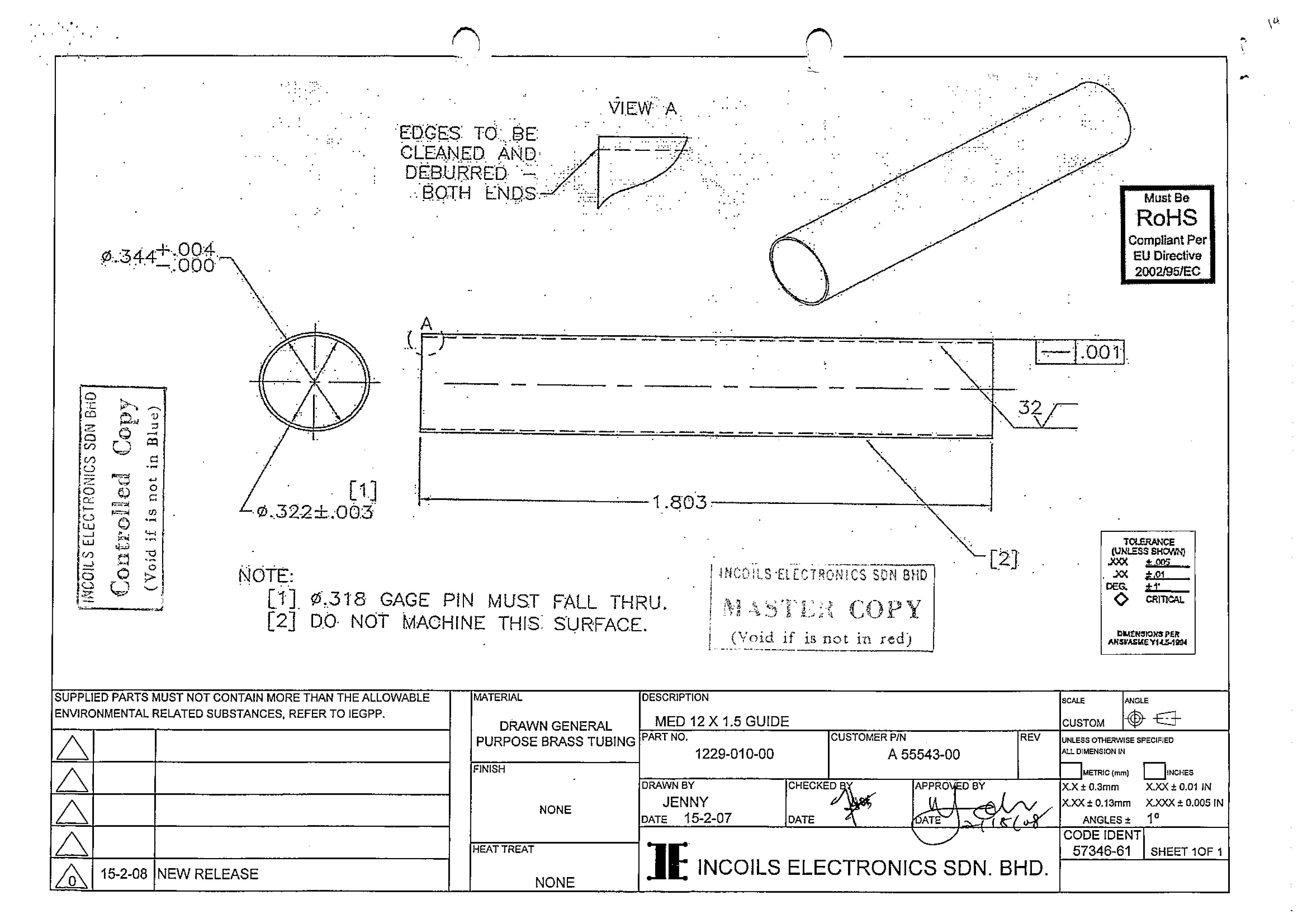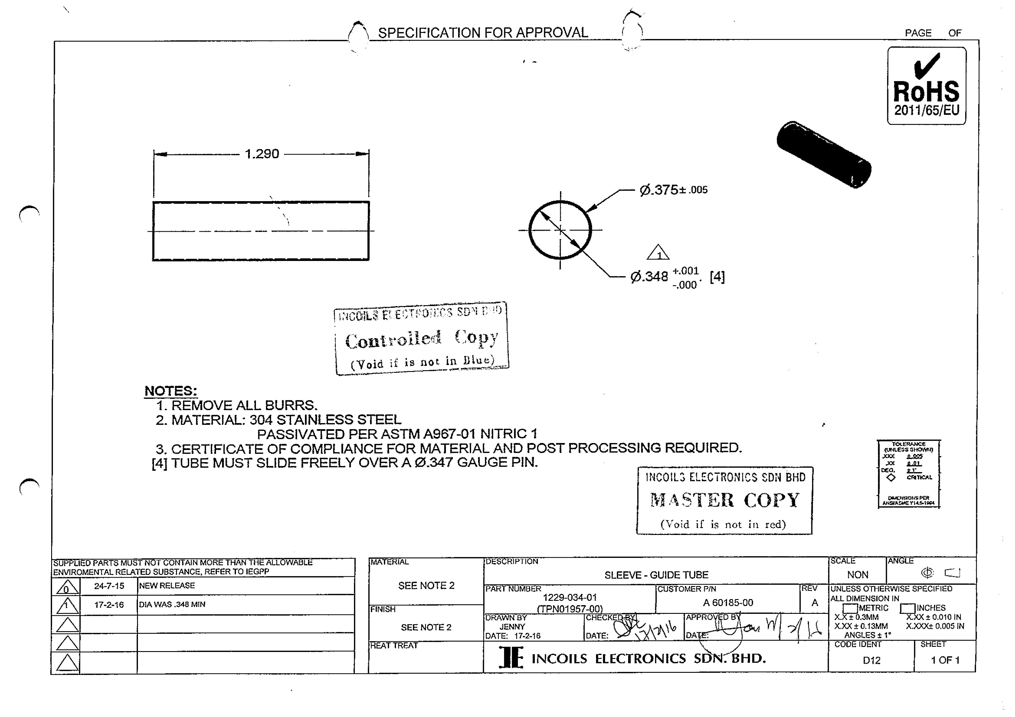 | 补充说明 | 黄铜牌号H65,尺寸单位为英寸,如长度1.182英寸,Φ.472表示直径0.472英寸 |