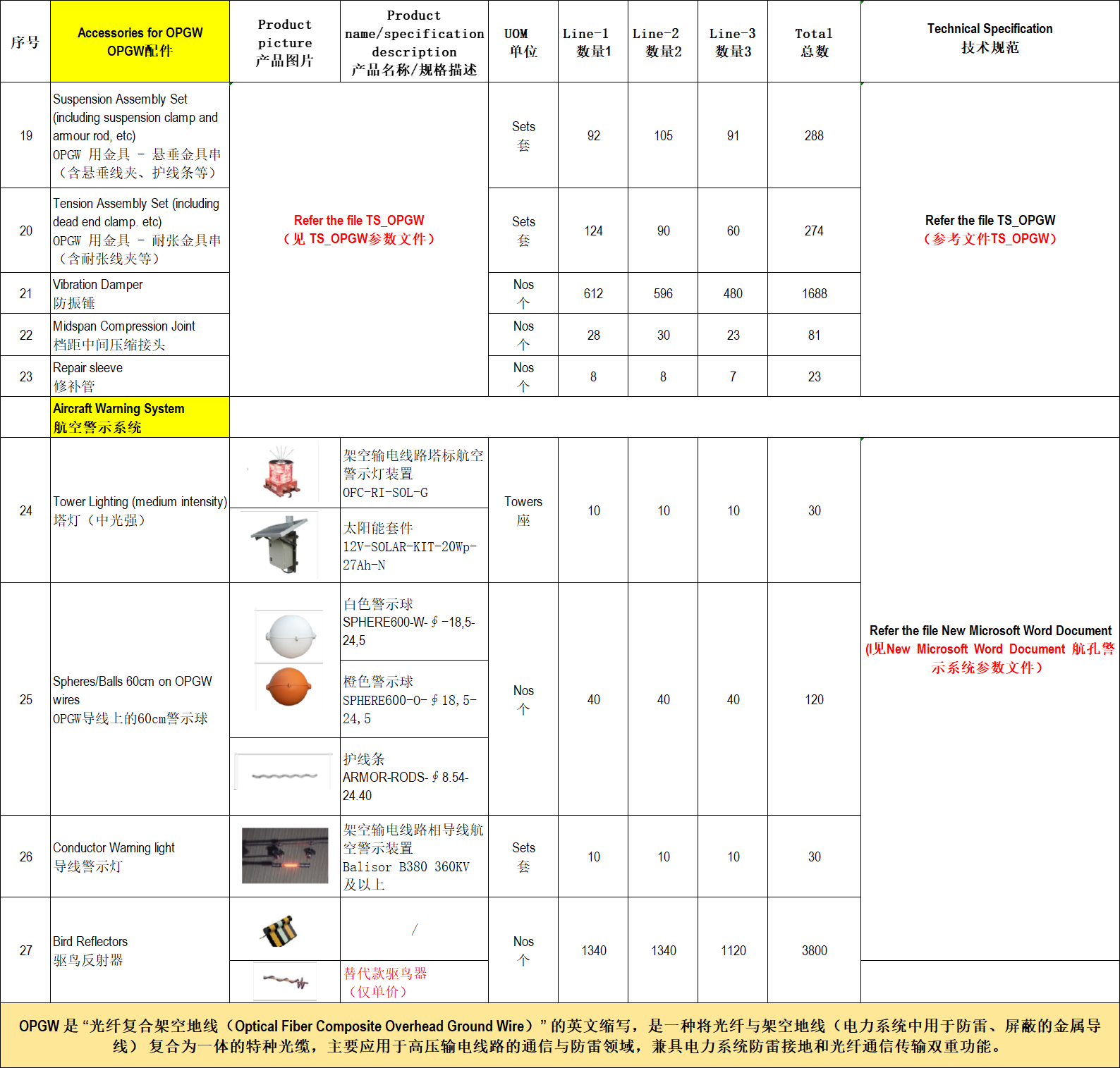 OPGW光纤复合架空地线和航空警示系统 产品清单.png