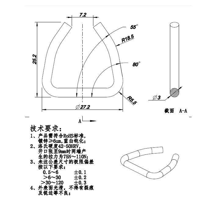 我厂现需采购50000个弹簧钢卡环,要求3.0线径,弹簧钢,加硬42-50HRV,表面不电镀,要求如附图,报 ,欢迎广大供应商前来报价。