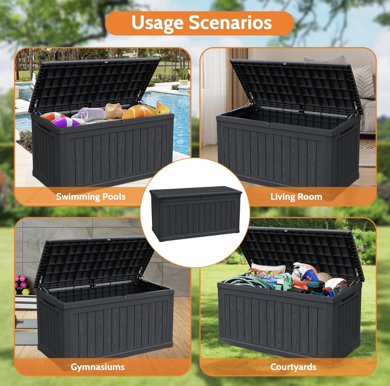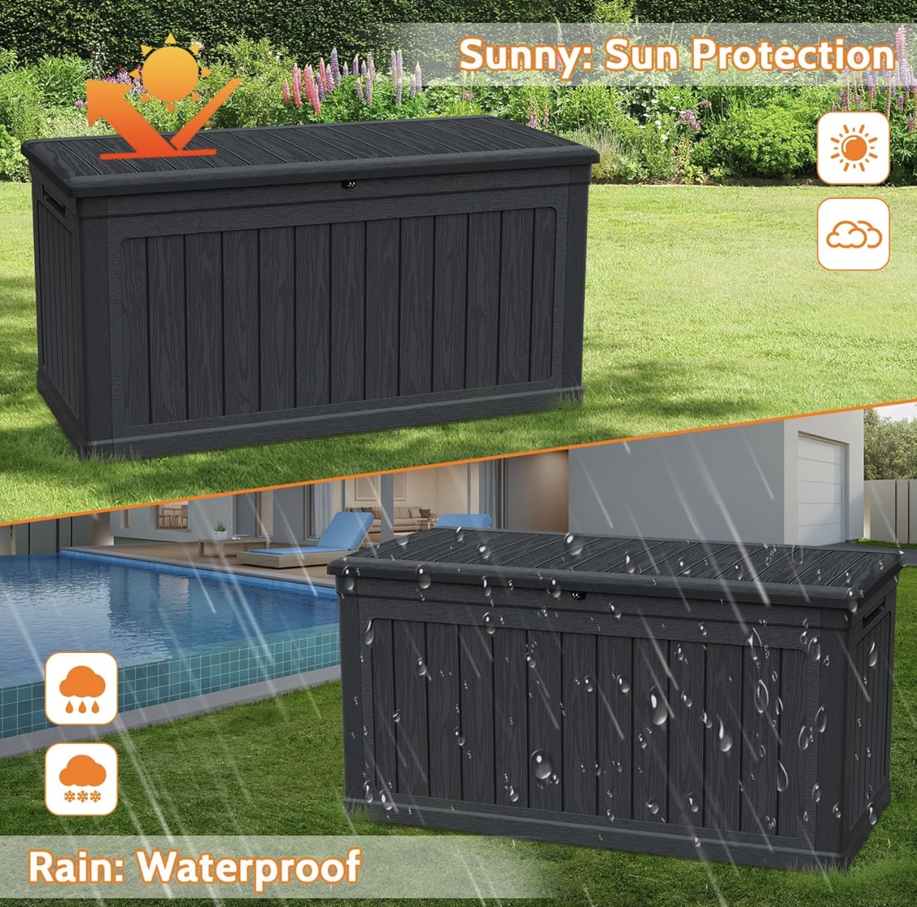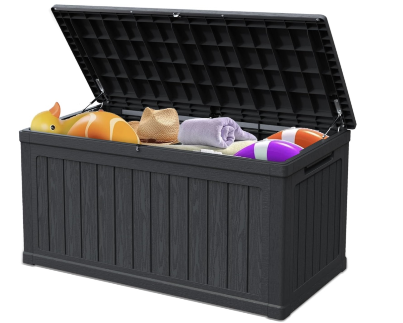 户外储物箱树脂 3,000 260 加仑双层树脂甲板盒 - 可锁定防水户外储物盒,1000 磅容量,
