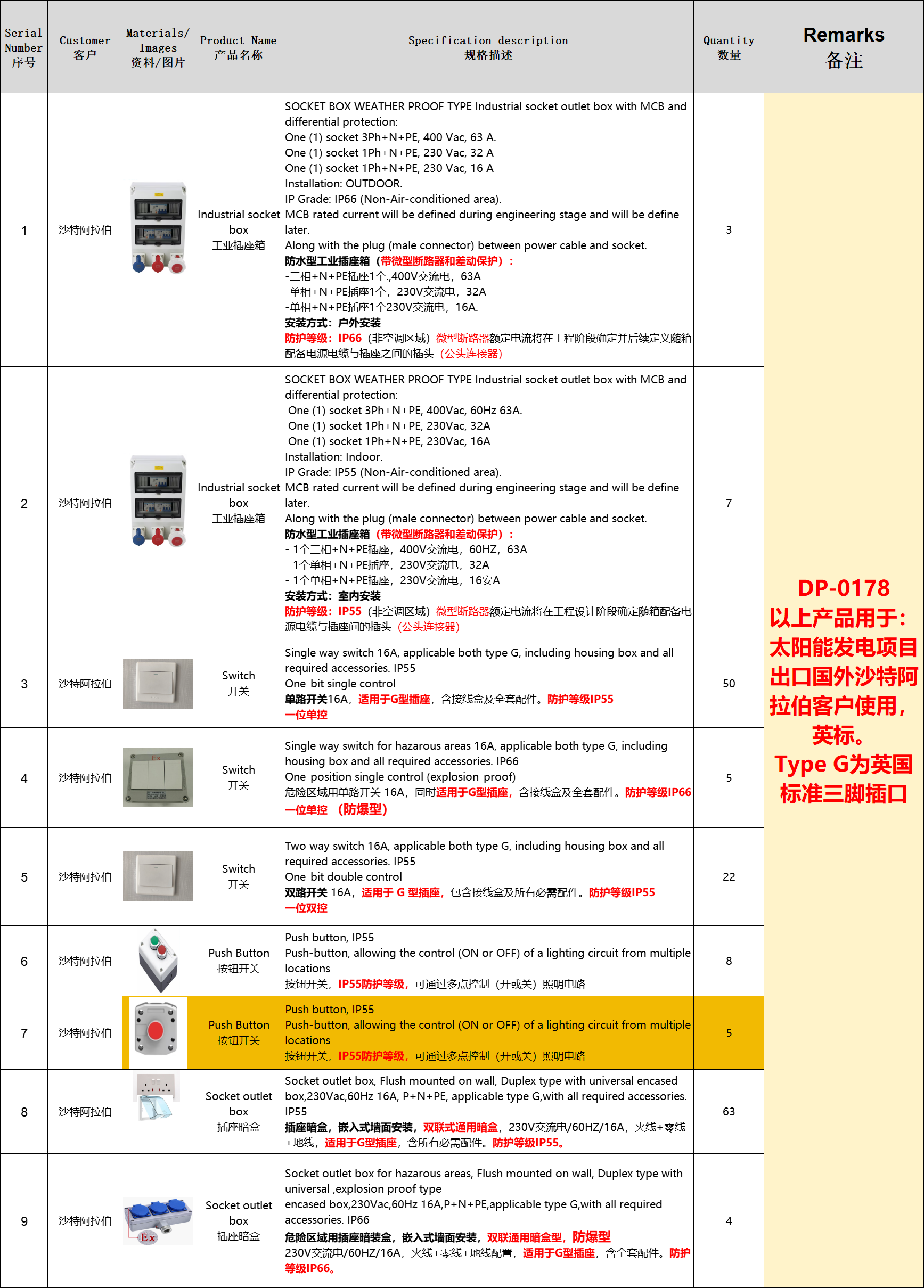 求购:9卷工业插座箱开关插座按钮