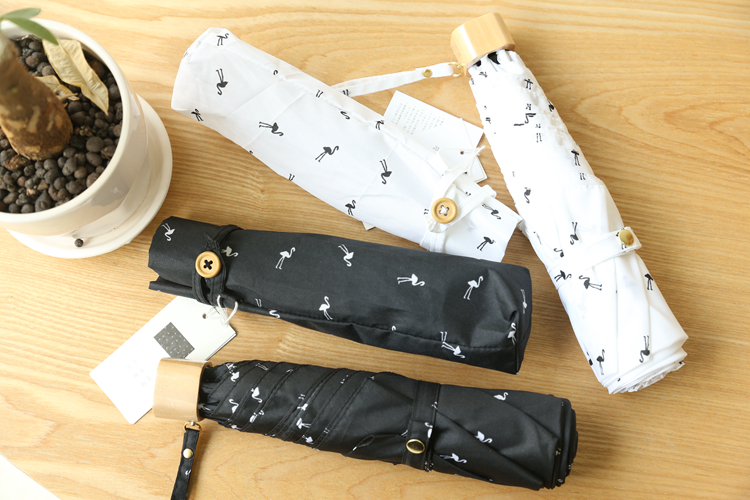 300把 | 小清新火烈鸟图案,8330/黑色/52cm*6K/190T pongee/纤维伞骨+铝中棒/实木手柄/约180g/手动三折伞 |