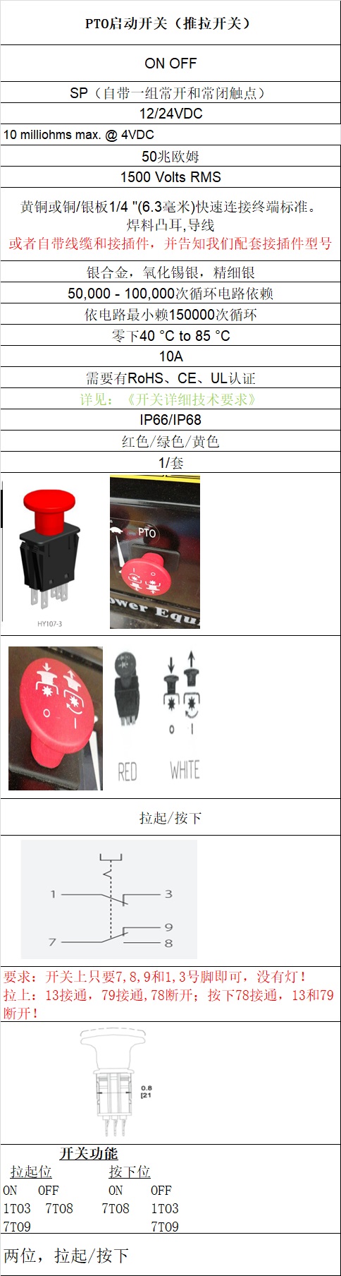 PTO启动开关