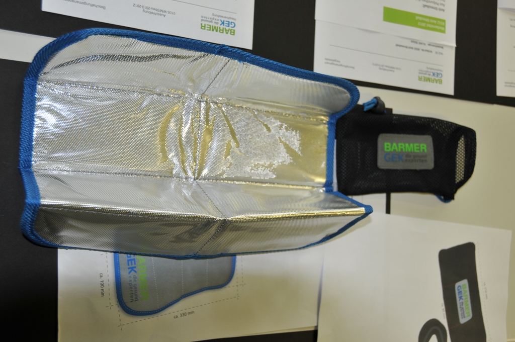 1件 | 我司德国客户要寻找隔热垫,请回覆确认是否可以照我们的要求生产,具体尺寸请参考图片。 客户要做的隔热垫是三层材料,第一层是600D的涤沦,第二层是2MM的海棉,第三层是隔热材料。 产品做好后折迭起来用”网布拉绳袋“装,最 一个胶袋。(备注:要印上客户的Logo) Insulation Cushion Order quantity:5,940 items Description:Upper side made of polyester 600D with PVC reinforcement in light grey,with tone in tone woven border Underside made of thermal insulation foil and 2 mm foam insert 1 longitudinal and 3 transverse seams to facilitate easy folding,packaged in black net bag with drawcord closure and plastic stopper,with BARMER GEK emblem in light grey made of polyester 600D stitched on Quality features:Azo-free,low cadmium Print:On upper side of cushion:3/0-colour:BARMER GEK corporate colours(green=Pantone 368,blue=Pantone 301,grey=Pantone 431) On the light grey BARMER GEK emblem on the bag:3-colour BARMER GEK corporate colours(green=Pantone 368,blue=Pantone 301,grey=Pantone 431) Packaging:10x in carton or polybag Outer packaging:200x in robust carton suitable for individual dispatch |