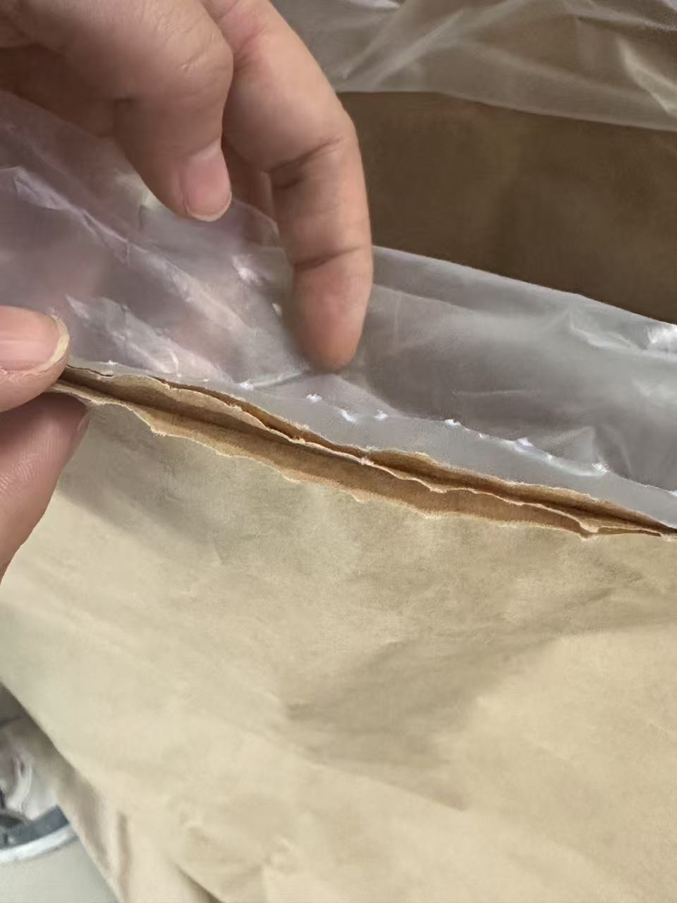 1批 | 3层开口牛皮纸袋内覆PO胶袋开口(牛皮纸与PO袋开口处点胶4cm)具体规格型号私聊详谈 |