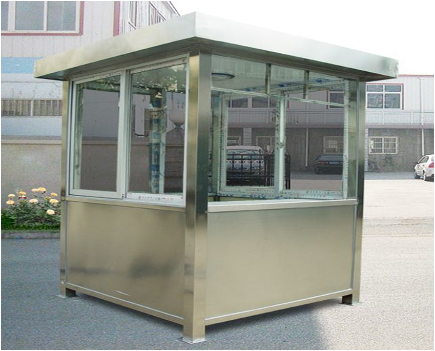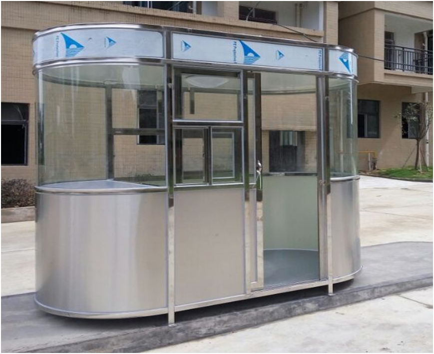 1.5*3.0*2.4m不锈钢椭圆岗亭 不锈钢材料为201不锈钢,不锈钢封板实厚0.8mm 2个; 1.5*1.5*2.4m不锈钢岗亭