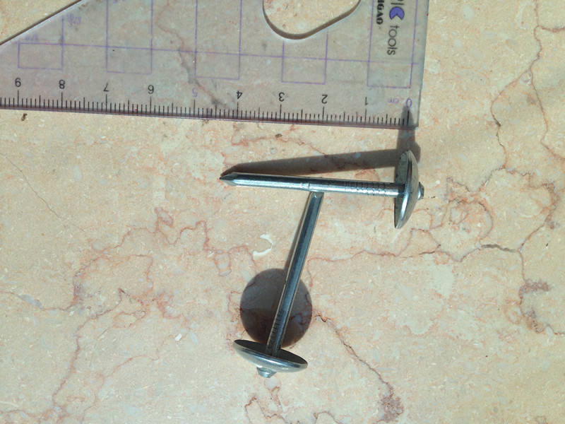 镀锌直杆瓦楞钉子 带帽长度:4.7cm 线径:3.4mm 帽直径:1.8cm。见附件图片。报