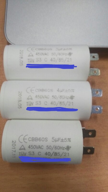 CBB60S 电机启动电容,3UF,4UF,5UF+/-5%,450VAC,50/60Hz, S3, C 40/85/21, CE TUV ,ROhs2