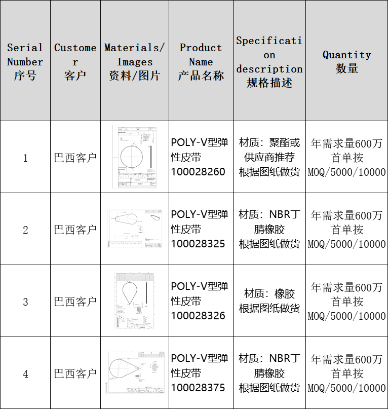 求购:4款弹性多沟带