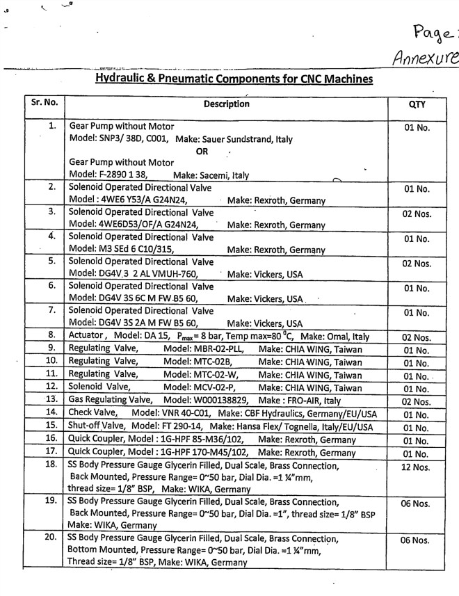 巴基斯坦采购数控机床液压气动元件-50个各部分元件,详情参数见附件或登录(www.chinabidders.com)查询编号(20181105170728-001)