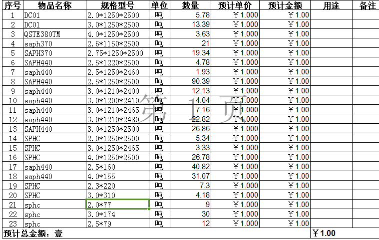 询价物品