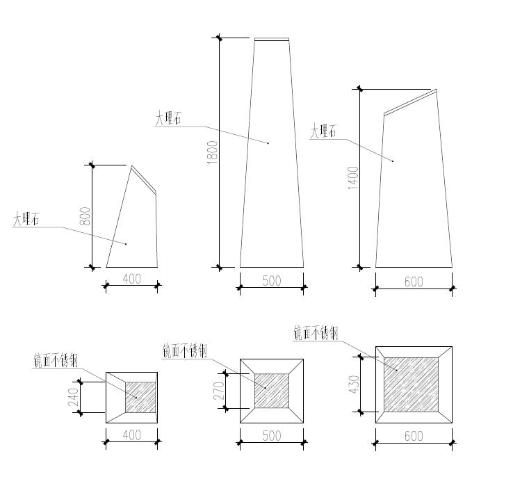 侧面和底面为大理石,顶面为镜面,大,中,小各1件共3件。