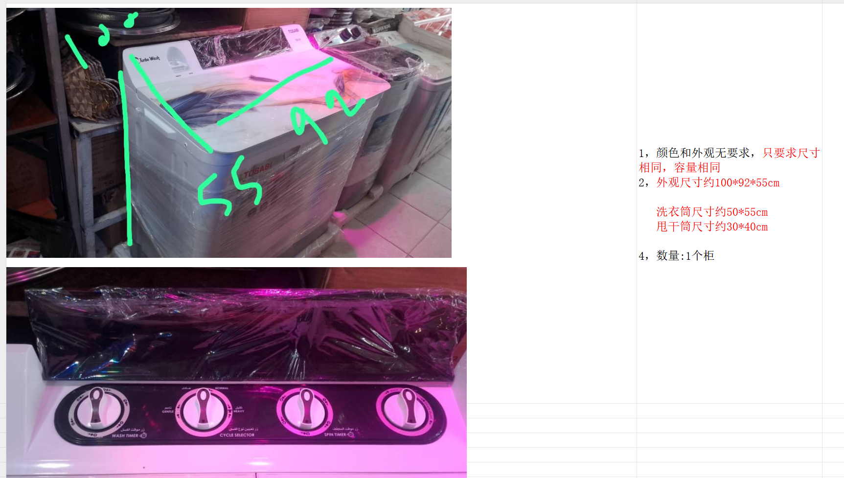 求购:洗衣机和冰箱,出口阿联酋